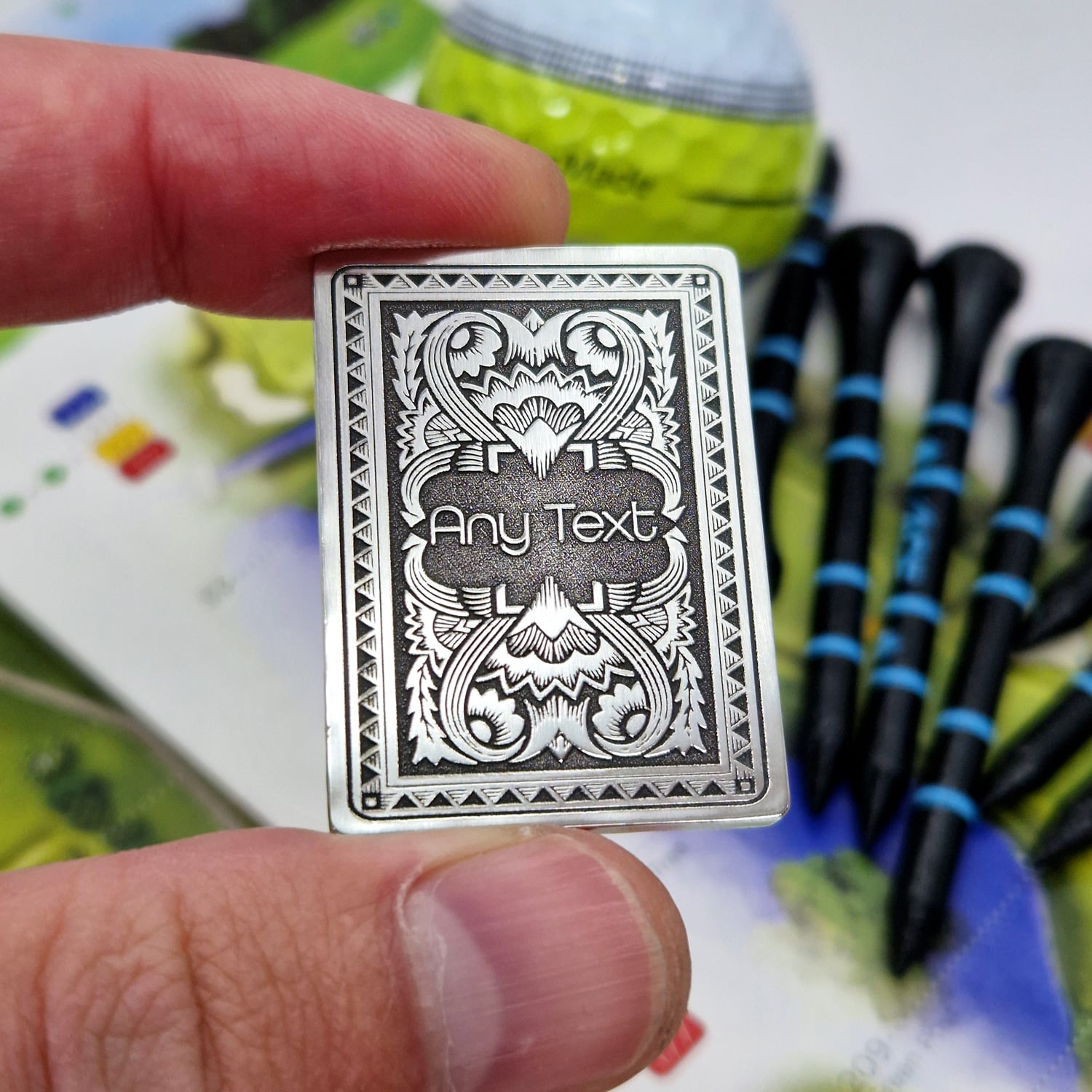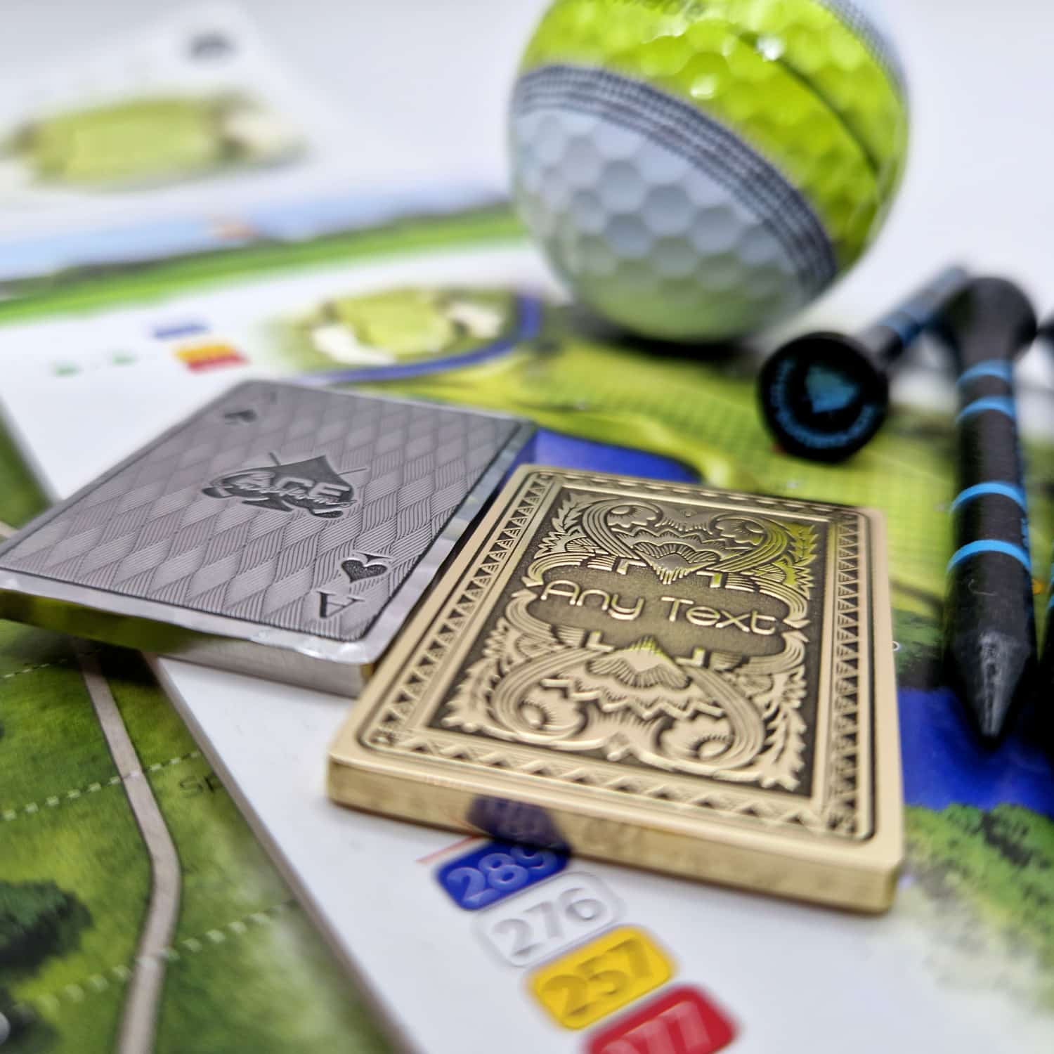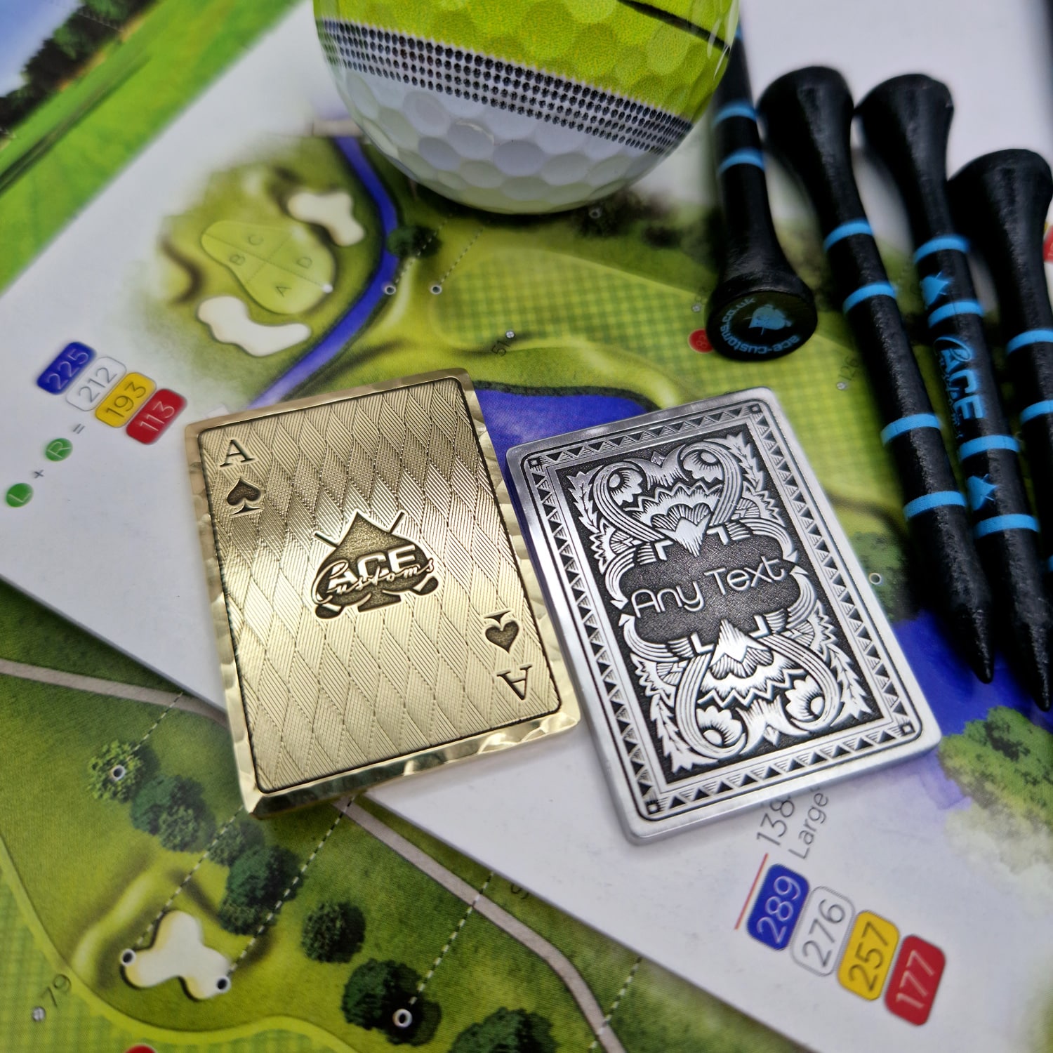 Intricately laser engraved Ace of Spades playing card design featuring an ornate design on the front and back, a prominent Ace Customs logo and space for customisation on the reverse side, limited to 2 words.