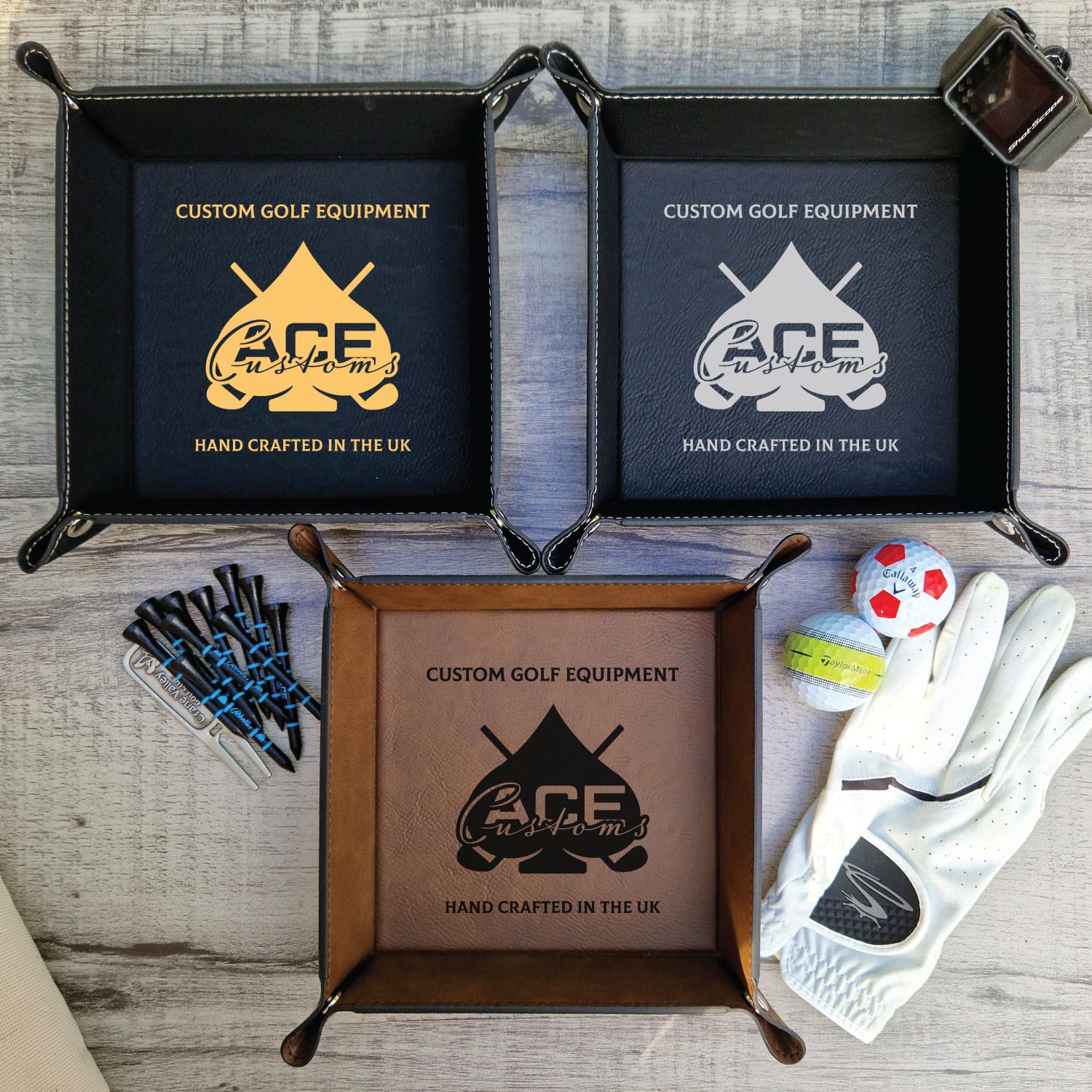 Customised Leatherette Catchall Tray with Ace Customs logo.