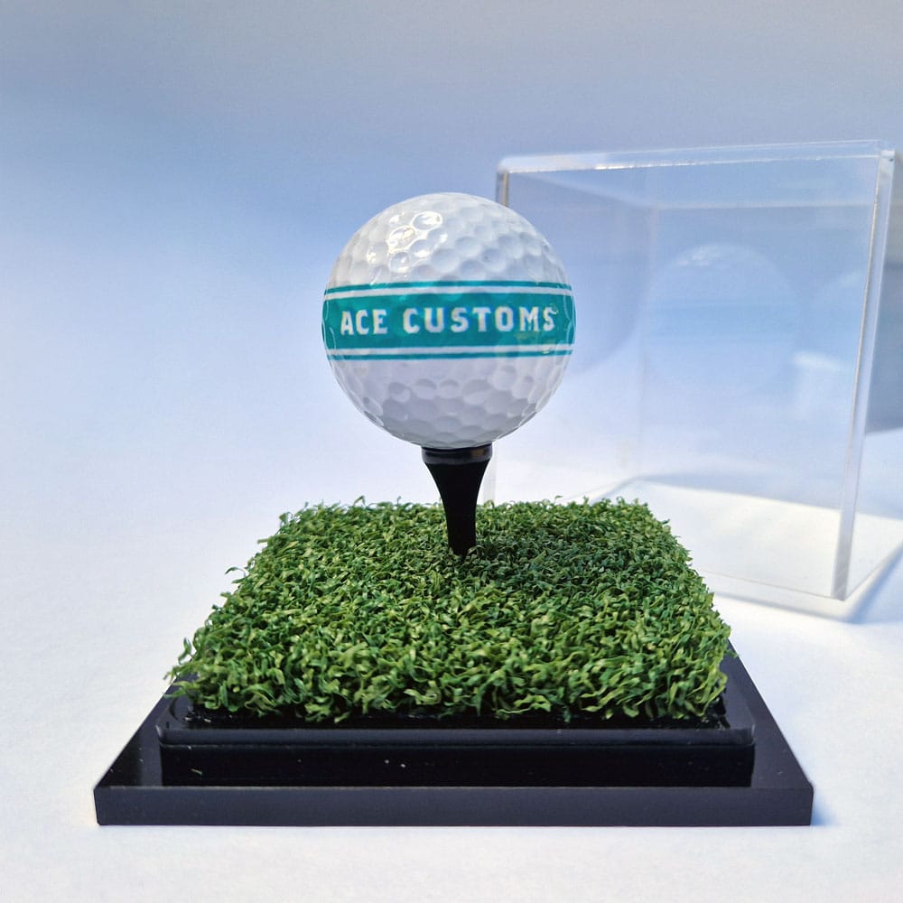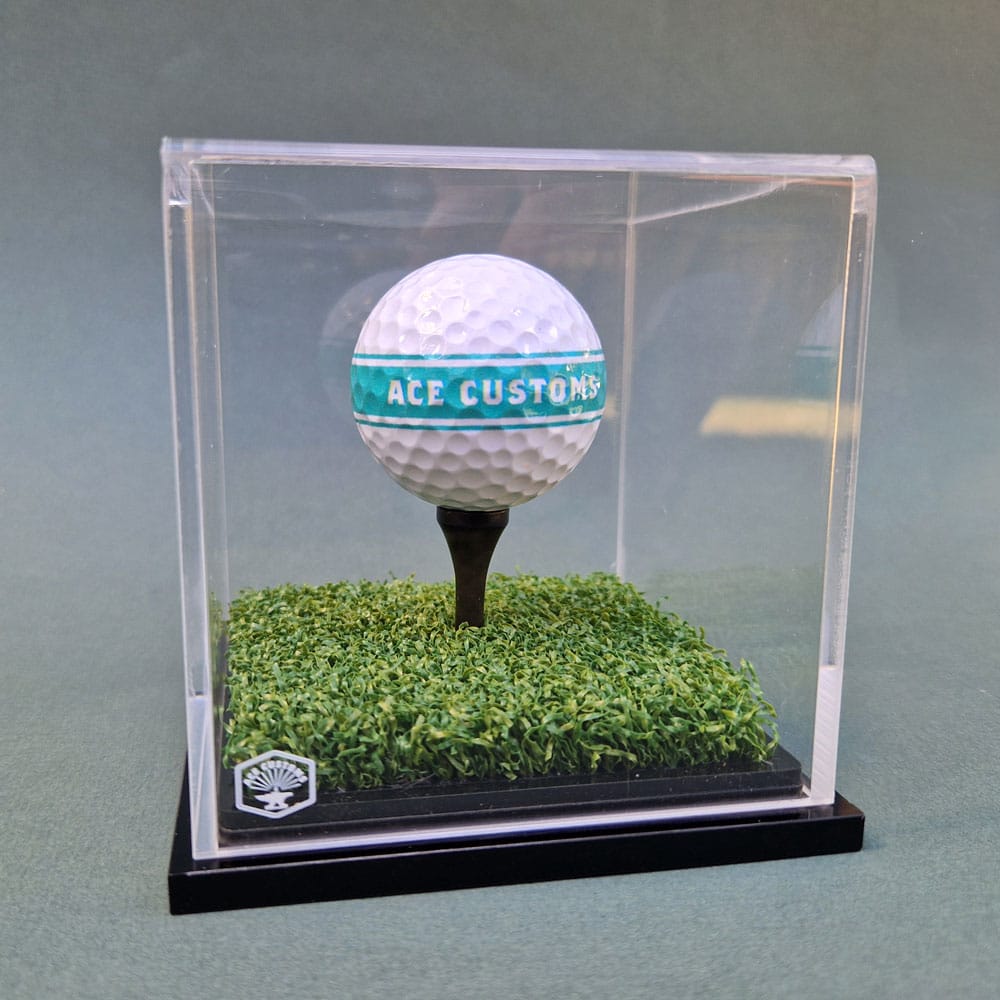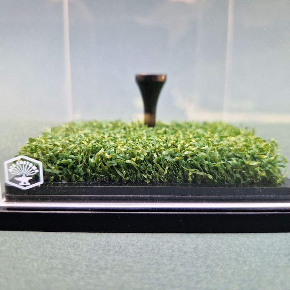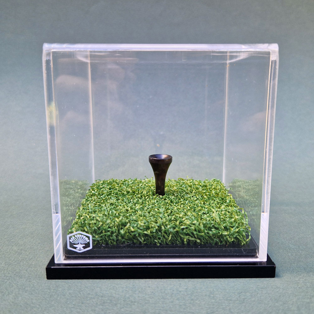 Set on a black tee, nestled in lifelike turf, and protected by crystal-clear acrylic – it’s a tribute to the shots that mattered.