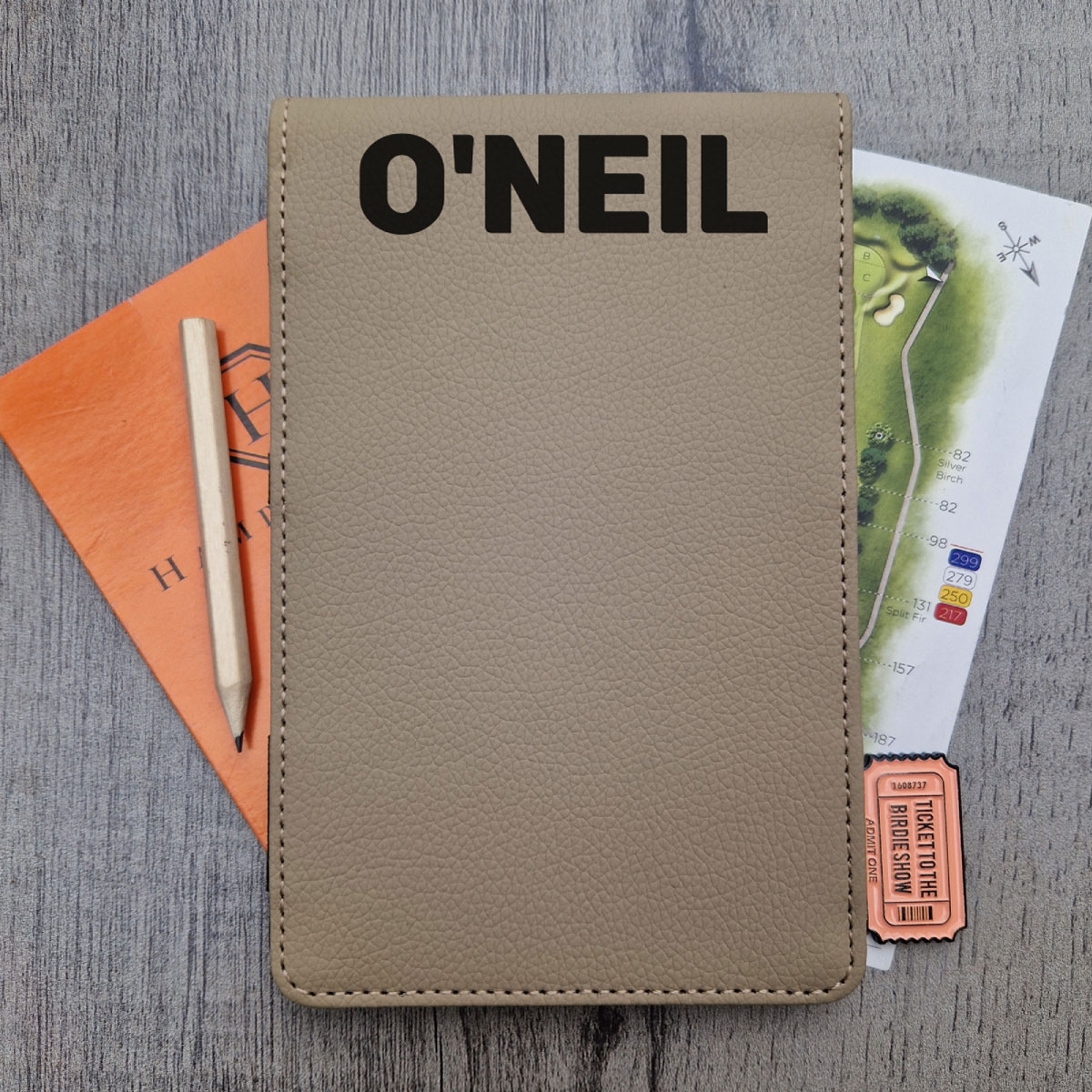 These are made from soft leatherette and reinforced with stiff card inserts. We advise to keep your scorecard holder dry where possible.