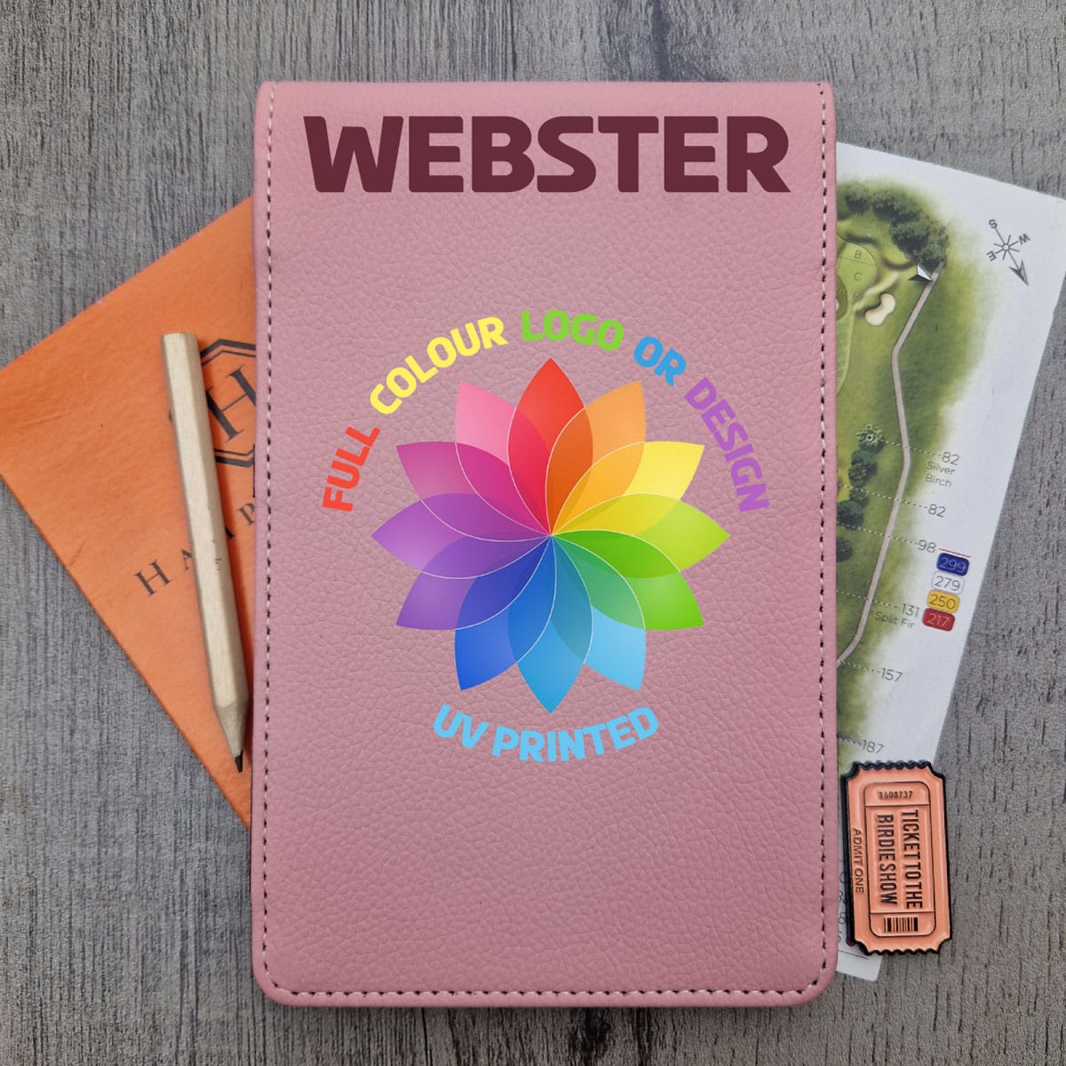 These are made from soft leatherette and reinforced with stiff card inserts. We advise to keep your scorecard holder dry where possible.