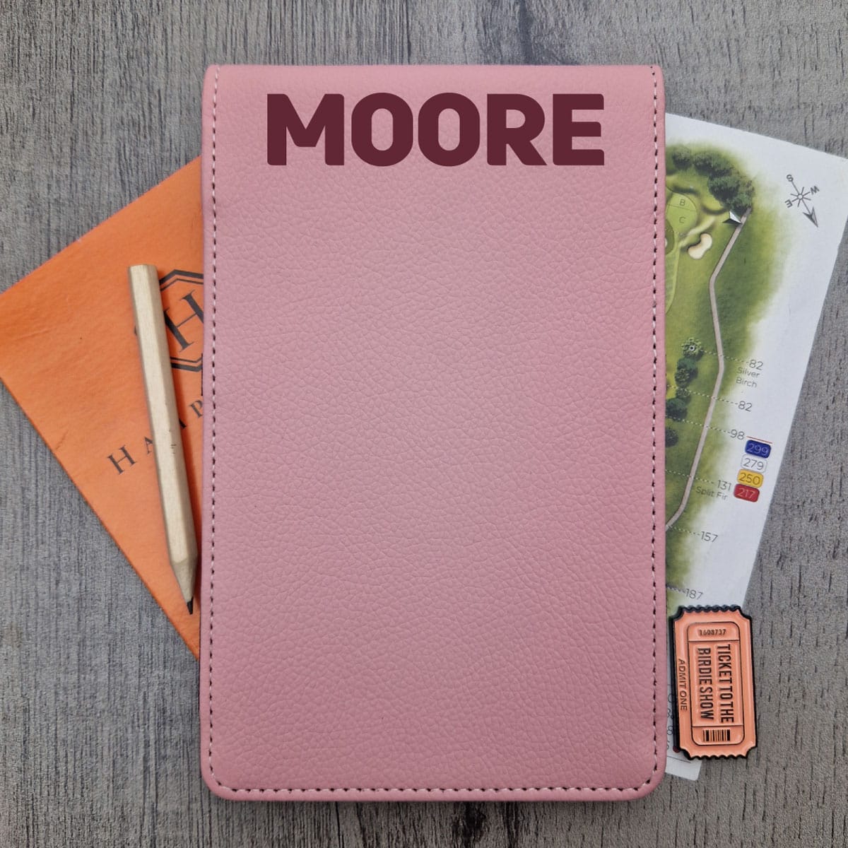 These are made from soft leatherette and reinforced with stiff card inserts. We advise to keep your scorecard holder dry where possible.