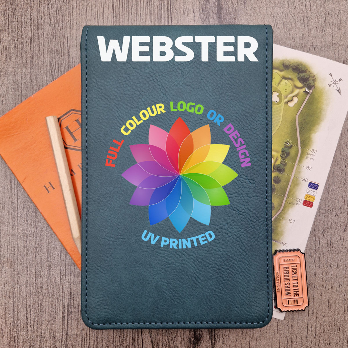 These are made from soft leatherette and reinforced with stiff card inserts. We advise to keep your scorecard holder dry where possible.