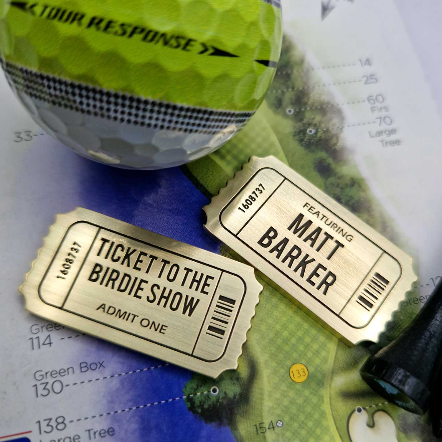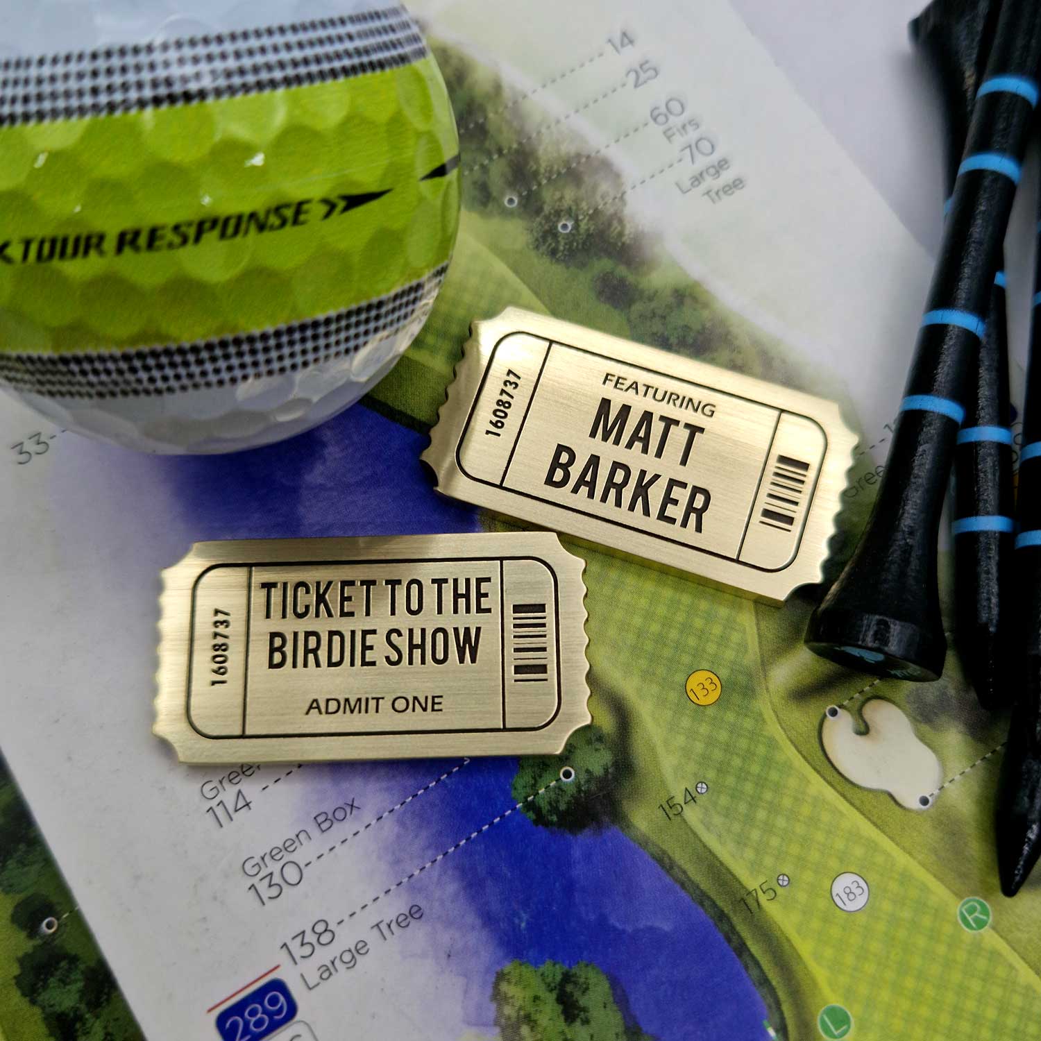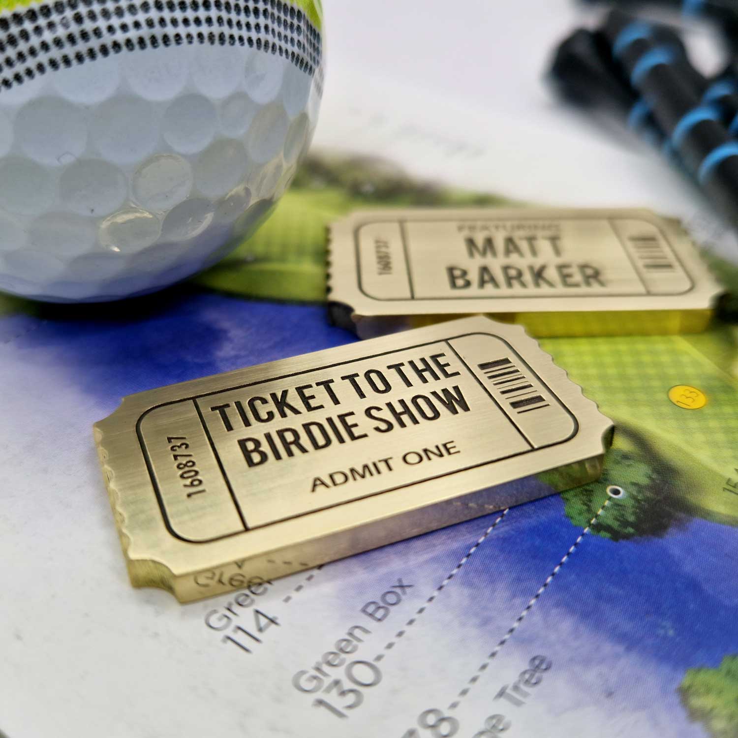 Ladies and gentlemen, golf enthusiasts of all ages, have we got a showstopper for you! Behold the ‘Ticket to the Birdie Show’ – your golden pass to a golfing spectacle like no other. Crafted from solid brass and shaped like a vintage ticket, this marker isn’t just about marking your ball; it’s about declaring your presence on the green with style.